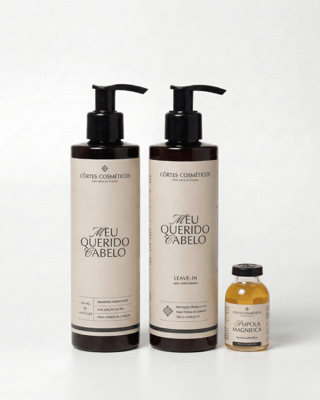 O shampoo perolado limpa sem ressecar, e o leave-in 3 em 1 é protetor térmico, condicionador e creme de pentear. ✨